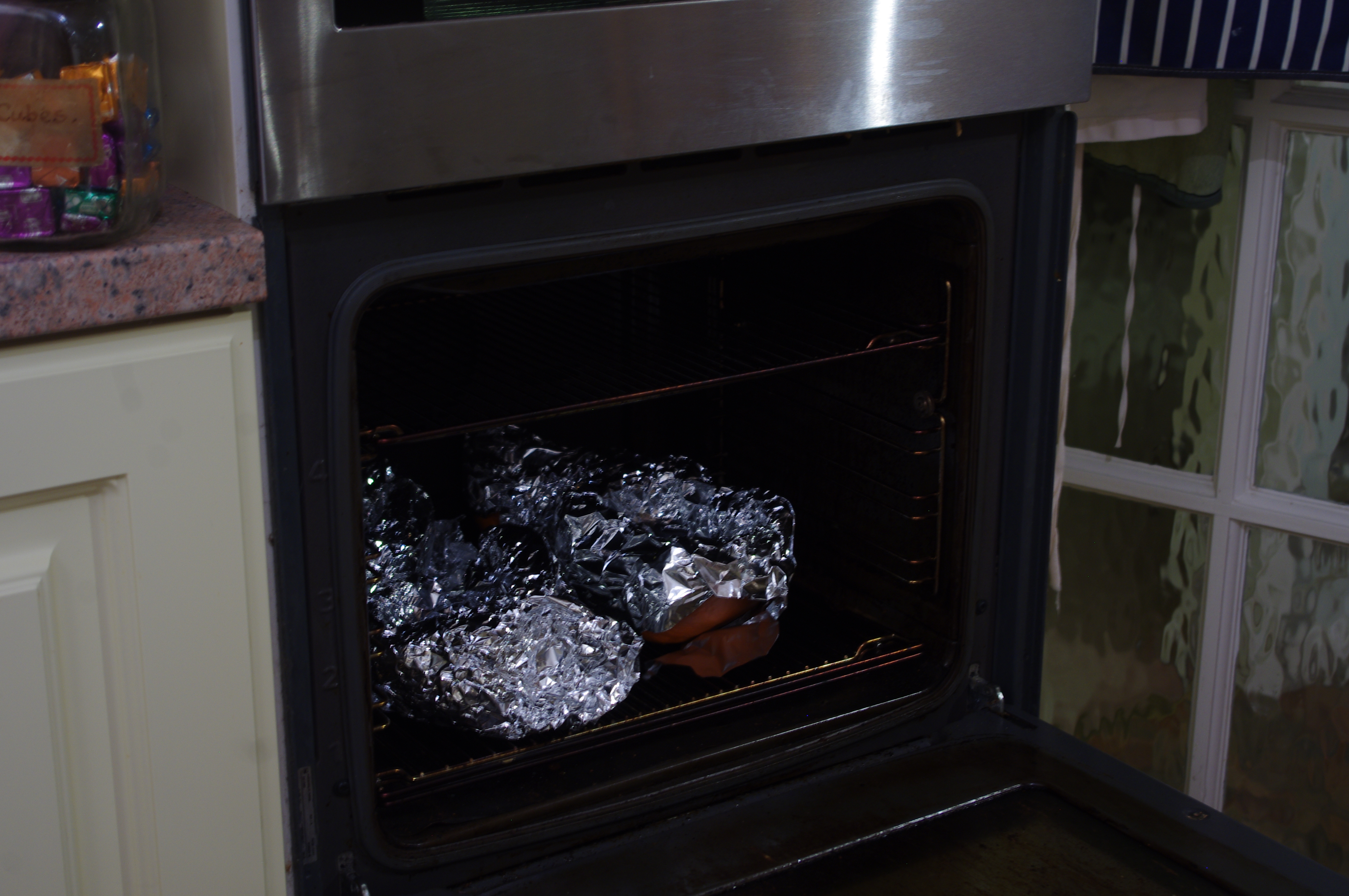 There’s a few different ways of harvesting pumpkin flesh. Some recipes ask you to carve it out with a spoon. That’s all very well but you need arms like Wonder Woman to do it properly. I found it easier to peel the skin off first and then cut the flesh into chunks. Better yet was the oven method: halve the pumpkin, scoop out the middle, wrap it in foil, and bake in a medium-heat oven (140 fan) for an hour. Then you just scoop the flesh out, like ice-cream, and blend to make a puree which can be used in most recipes, and can be frozen for later. This method also makes the kitchen smell of cooked pumpkin – an earthy, exciting aroma – and wrapping something in foil and baking it will make you will feel as if you were cooking space food in the future.