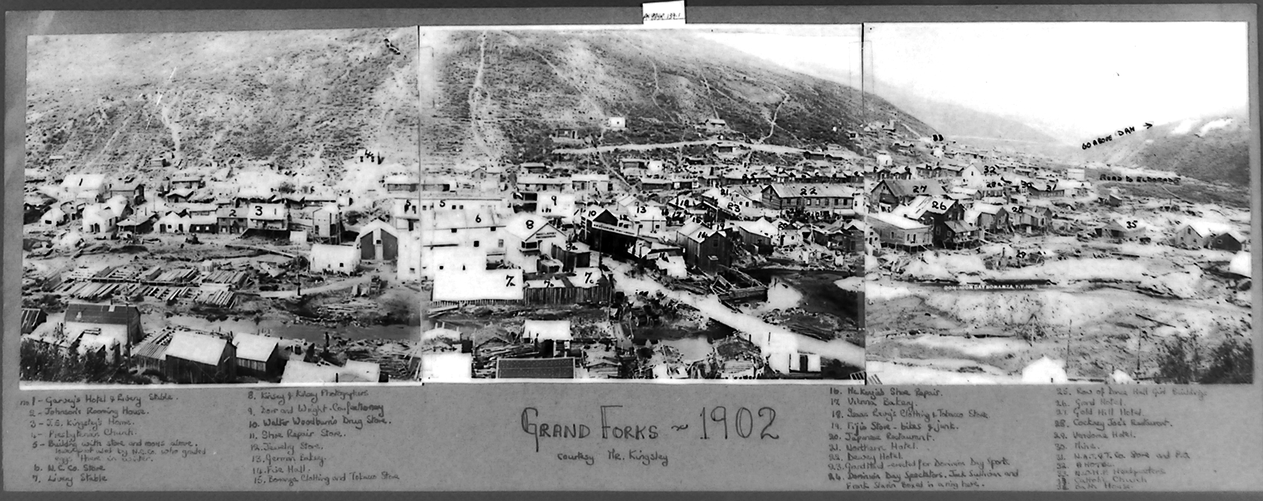 In 1899 gold was discovered in a more accessible location, in Alaska, and Grand Forks fell into decline. By 1911, just fifteen years after the town was established, the town was completely abandoned so that the ground underneath could itself be mined for gold.